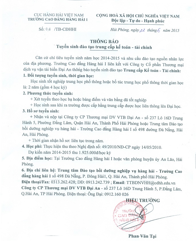 Thông báo: Tuyên sinh lớp tiếng Anh hàng hải I,II,III