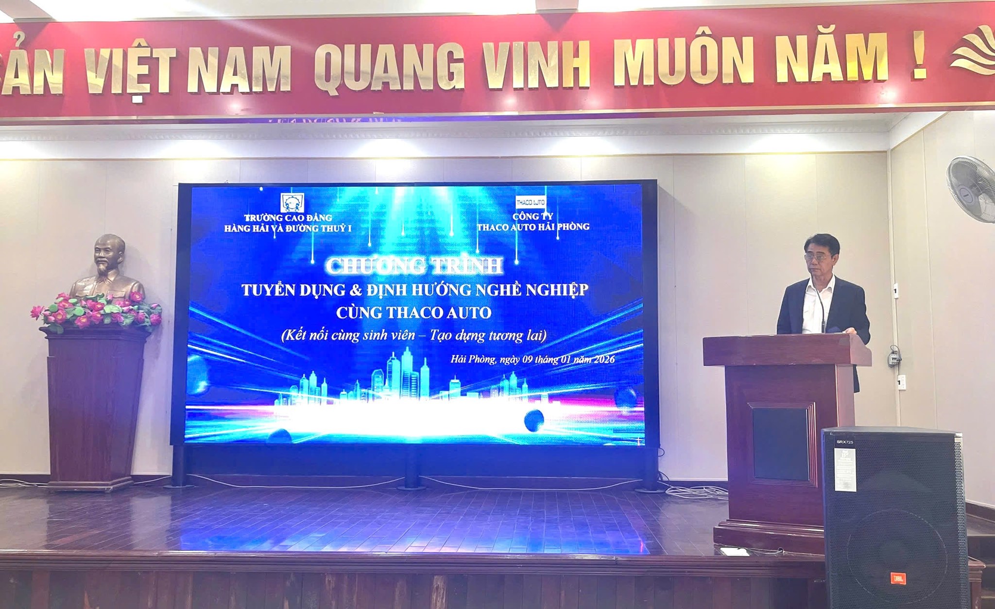 Nhằm tăng cường mối liên kết giữa nhà trường và doanh nghiệp, tạo điều kiện cho sinh viên tiếp cận sớm với thị trường lao động, ngày 9/01/2026, tại Hội trường A3 - Trường Cao đẳng Hàng hải và Đường thủy I đã diễn ra Hội thảo với chủ đề “Hướng nghiệp và tuyển dụng cho học sinh sinh viên nghề Công nghệ ô tô” do Công ty TNHH Thaco Auto Hải Phòng và Trường Cao đẳng Hàng hải và Đường thuỷ I tổ chức.