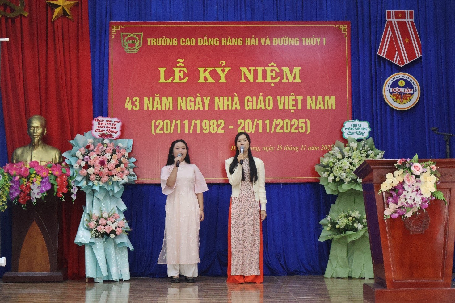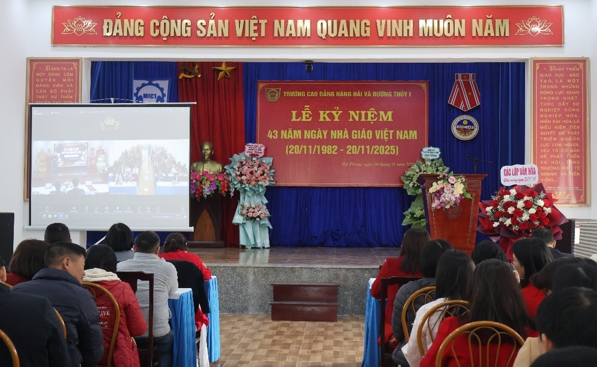 Sáng ngày 20/11/2025, Trường Cao đằng Hàng hải và Đường thủy I long trọng tổ chức Lễ kỷ niệm 43 năm ngày Nhà giáo Việt Nam (20/11/1982-20/11/2025) qua hình thức trực tiếp kết hợp trực tuyến tại Trụ sở chính kết nối với cơ sở đào tạo Nam Đồng của Nhà trường nhằm tri ân, tôn vinh thầy, cô - những người đã, đang và sẽ tiếp tục cống hiến trí tuệ, tâm huyết cho sự nghiệp trồng người cao quý.
