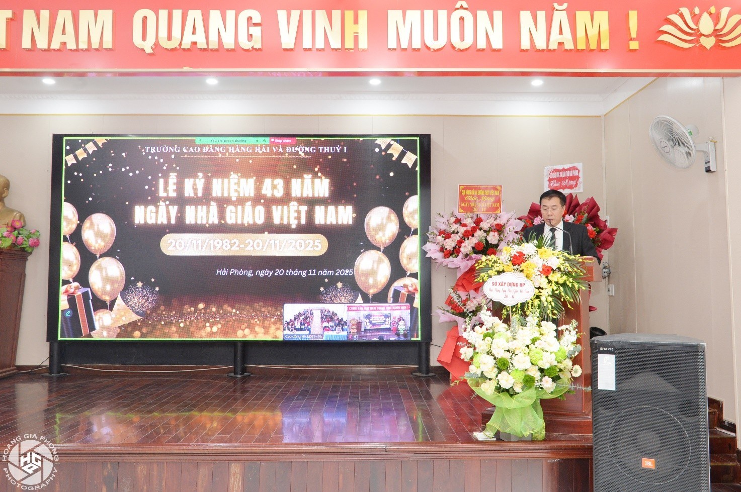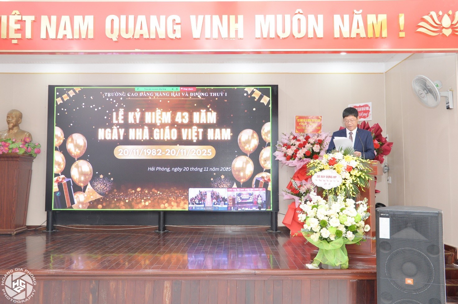 Ảnh 9. Thạc sỹ Đỗ Hồng Hải - Phó Hiệu trưởng, Chủ tịch HĐT đọc thư chúc mừng nhân ngày Nhà giáo Việt Nam 20/11 của Bộ trưởng Bộ Xây dựng