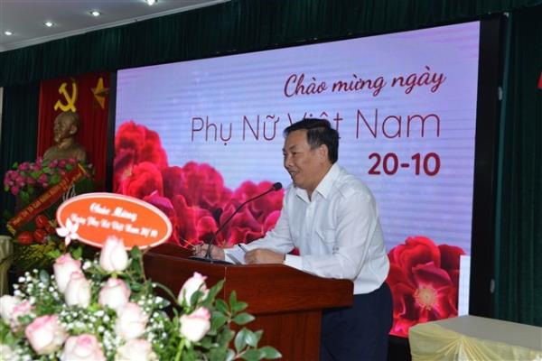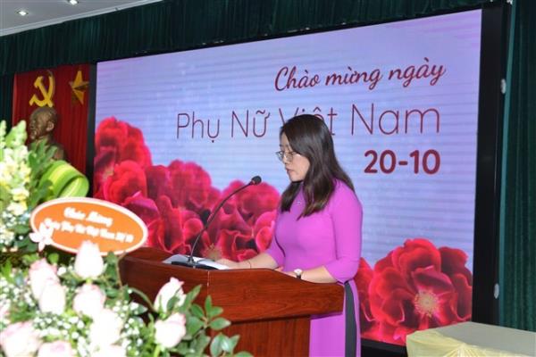 Cô Vũ Thị Hải Vân – Phó Hiệu trưởng, Chủ tịch Công đoàn phát biểu chúc mừng nữ CBVC nhân dịp kỷ niệm 88 năm ngày Phu nữ Việt Nam
