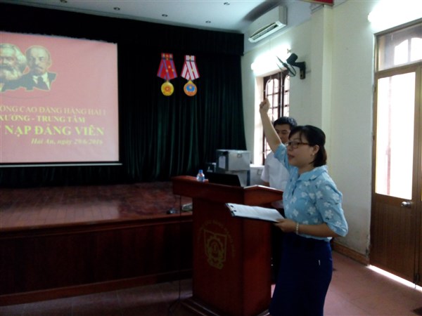 Thực hiện Quyết định Kết nạp Đảng viên số 481-QĐ/QU, ngày 17 tháng 6 năm 2016 của Quận ủy Hải An và được sự phê chuẩn của Ban chấp hành Đảng bộ trường Cao đẳng Hàng hải I, sáng ngày 29 tháng 6 năm 2016, chi bộ Xưởng - Trung tâm đã long trọng tổ chức Lễ kết nạp đồng chí Lăng Hoàng Vân vào Đảng Cộng Sản Việt Nam.