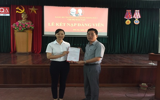 Triển khai công tác phát triển đảng viên của chi bộ và Quyết định số 860-QĐ/QU ngày 16/5/2017 của Ban thường vụ Quận ủy quận Hải An về việc kết nạp đảng viên, chiều ngày 26/5/2017, được sự đồng ý của Đảng ủy Trường Cao đẳng Hàng hải I, Chi bộ Đào tạo đã tổ chức Lễ kết nạp đảng viên đối với quần chúng ưu tú Phùng Thị Hà - nhân viên phòng Đảm bảo chất lượng đào tạo.