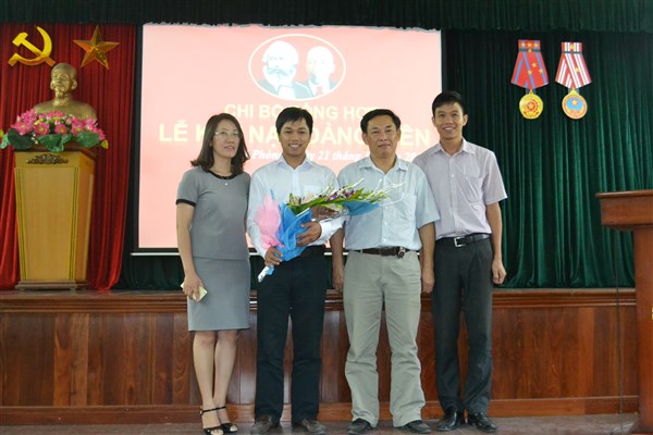 Ảnh: Bí thư chi bộ Tổng Hợp trao Quyết định kết nạp cho đồng chí Phạm Nhật