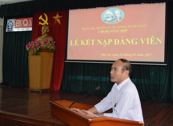 Chiều ngày 24/5/2017, được sự đồng ý của Đảng ủy Quận Hải An và Đảng ủy Trường Cao đẳng Hàng hải I, Chi bộ Tổng hợp đã tổ chức Lễ kết nạp đảng viên đối với quần chúng ưu tú Nguyễn Thị Thuận - Cán bộ công tác tại phòng Tổ chức hành chính.