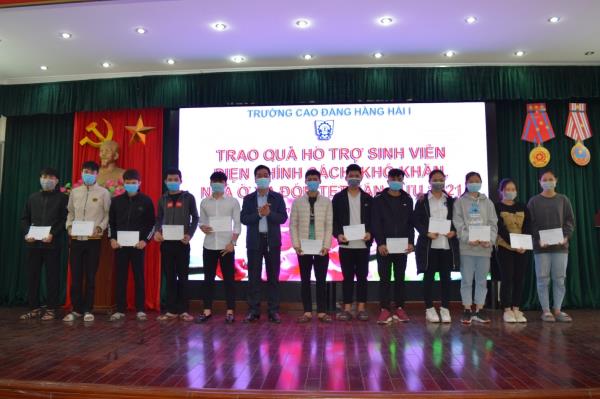 Ngày 26/01/2021 tại Hội trường A3 – trường Cao đẳng Hàng hải I đã diễn ra chương trình tặng quà cho sinh viên có hoàn cảnh khó khăn và sinh viên ở xa trường về quê ăn Tết Tân Sửu. Đến dự với chương trình có thầy Lương Quang Trung- Phó Hiệu trưởng nhà trường, thầy Đào Quang Thành- Bí thư Đoàn trường, Thầy Đỗ Đức Lợi – Trưởng phòng công tác học sinh, sinh viên cùng các thầy cô trong phòng và tất cả HSSV thuộc đối tượng được tặng quà về quê.