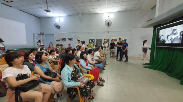 Ảnh 2. Đoàn xem phim tư liệu về nhà tù Phú Quốc