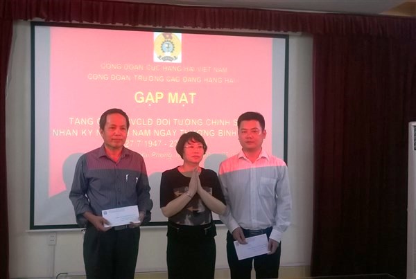 Nhân kỷ niệm 69 năm ngày Thương binh, Liệt sỹ (27/7/1947 – 27/7/2016), thừa uỷ quyền của Công đoàn Cục Hàng hải Việt Nam tại công văn số 82/CĐCHHVN ngày 22/7/2016, triển khai thực hiện các hoạt động công tác Công đoàn trường năm 2016, vào hồi 16g00 ngày 26/7/2016 tại Hội trường tầng 3 nhà A1, BCH Công đoàn trường tổ chức gặp mặt, tặng quà cán bộ, viên chức, lao động là gia đình thương binh, liệt sỹ.
