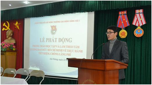Chiều ngày 22/01/2016, tại Hội trường A3 trường Cao đẳng Hàng hải I, Ban chấp hành Đoàn trường đã tổ chức Lễ phát động phong trào học tập và làm theo tấm gương đạo đức Hồ Chí minh về thực hành tiết kiệm chống lãng phí thông qua hình thức ký cam kết giữa các chi đoàn với Ban chấp hành Đoàn trường, Phòng Tổ chức hành chính và Phòng công tác học sinh, sinh viên.