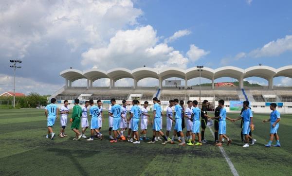 Hai đội Đại học Y dược Hải Phòng và Cao đẳng Hàng hải I bắt tay giao lưu trước khi vào trận đấu