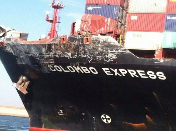 Tàu Colombo Express mang quốc tịch Đức (dài 335 m, rộng 43 m, sức chở 8.749 TEUs, chủ tàu Hapag – Lloyd) đã cố vượt tàu Maersk Tanjong (Quốc tịch Singapore, dài 332m, rộng 43 m, chủ tàu Maersk Line) và khi hai tàu ở vị trí song song thì mũi tàu Colombo Express đột ngột ngả trái và va chạm đã xảy ra.
