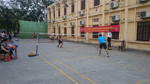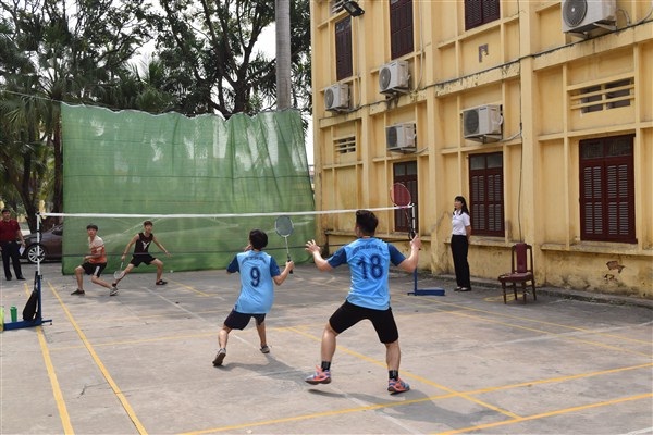Trận thi đấu đơn nam mở đầu cho giải cầu lông học sinh, sinh viên