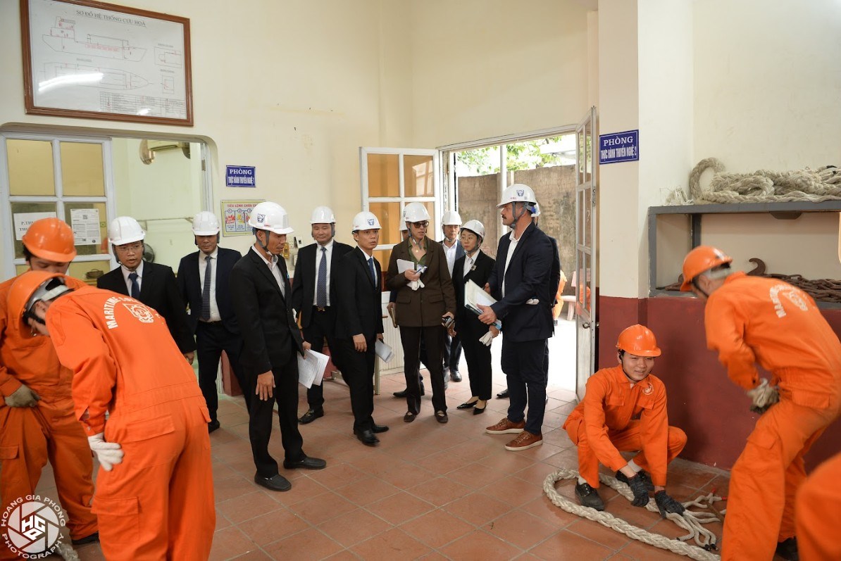 Đoàn EMSA do bà Melany Saramago - Trưởng nhóm đánh giá làm Trưởng đoàn, cùng ông Bartosz Dziurla - thành viên Đoàn đánh giá, làm việc với Tổ công tác Cục Hàng hải và Đường thủy Việt Nam, Ban Giám hiệu Nhà trường và các đơn vị chức năng.