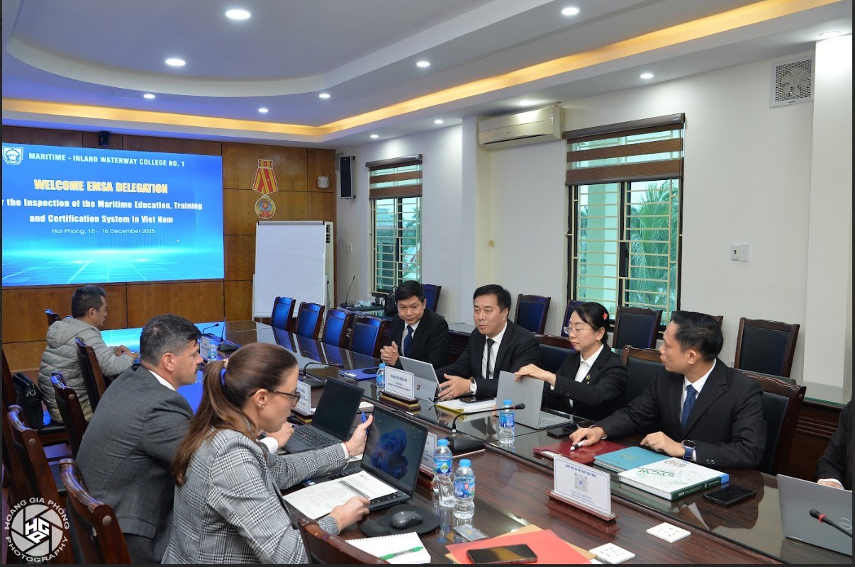 Trong hai ngày 15 -16/12/2025, Trường Cao đẳng Hàng hải và Đường thủy I (MIC1) đã đón tiếp và làm việc với Đoàn đánh giá của Cơ quan An toàn Hàng hải Châu Âu (EMSA) về công tác đào tạo, huấn luyện thuyền viên Việt Nam theo Công ước quốc tế về tiêu chuẩn huấn luyện, cấp chứng chỉ và trực ca cho thuyền viên (STCW) của Tổ chức Hàng hải Quốc tế (IMO)