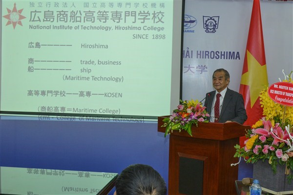GS.TS. Tsuji Keisuke– Hiệu trưởngTrường Cao đẳng Hàng hải Hiroshima (Nhật Bản) phát biểu tại buổi lễ