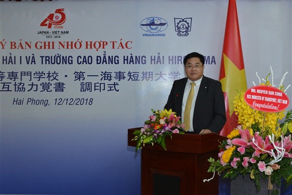 Nhân dịp kỷ niệm 45 năm thiết lập quan hệ ngoại giao Việt Nam - Nhật Bản 21/9/1973-21/9/2018, chiều ngày 12/12/2018, tại Trường Cao đẳng Hàng hải I trực thuộc Cục Hàng hải Việt Nam đã diễn ra lễ ký Bản ghi nhớ hợp tác giữa Trường Cao đẳng Hàng hải I và Trường Cao đẳng Hàng hải Hiroshima (Nhật Bản).