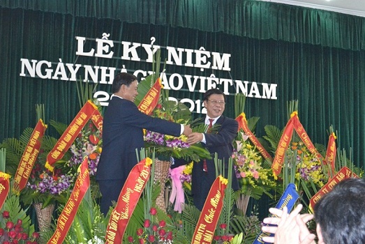 | Thứ trưởng Nguyễn Văn Công phát biểu chúc mừng các thầy cô giáo nhân ngày 20/11/2012 |