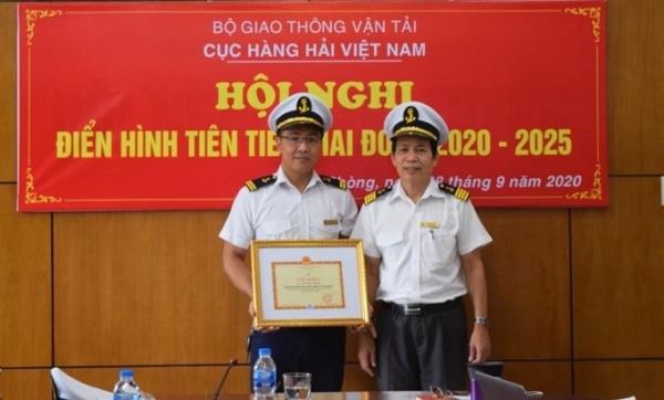 Thầy Vũ Ngọc Hùng (đeo kính) nhận bằng khen điển hình tiên tiến của Cục Hàng Hải giai đoạn 2020 -2025