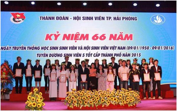 Tối ngày 09/01/2016, tại Trường Đại học Hàng hải Việt Nam, Thành đoàn - Hội Sinh viên Việt Nam thành phố đã tổ chức Chương trình Kỷ niệm 66 năm Ngày truyền thống học sinh sinh viên và Hội sinh viên Việt Nam (09/01/1950 – 09/01/2016), biểu dương sinh viên 5 tốt cấp thành phố năm 2015 và trao học bổng “Thắp sáng ước mơ - Đồng hành cùng bạn đến trường năm học 2015 - 2016”.