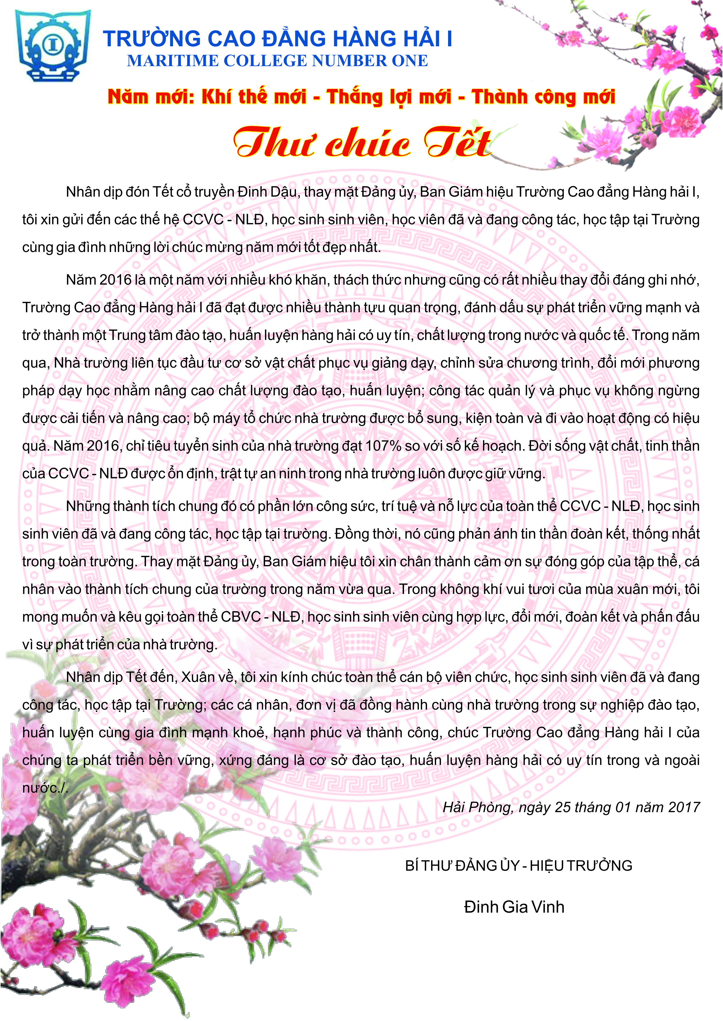 THƯ CHÚC TẾT CỦA HIỆU TRƯỞNG - XUÂN ĐINH DẬU 2017