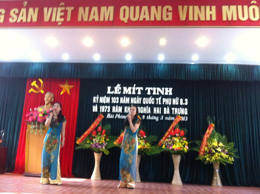 Được sự chỉ đạo của Đảng ủy; Ban Chấp hành Công đoàn Nhà trường, Ban nữ công đã tổ chức Lễ kỷ niệm ngày 8/3/3013 nhằm ôn lại truyền thống vẻ vang của phụ nữ Quốc tế nói chung và phụ nữ Việt Nam nói riêng. Tham dự buổi lễ có các đồng chí trong Ban Chấp hành Đảng ủy, Ban Giám hiệu, BCH Công đoàn và Trưởng các đơn vị trực thuộc.
