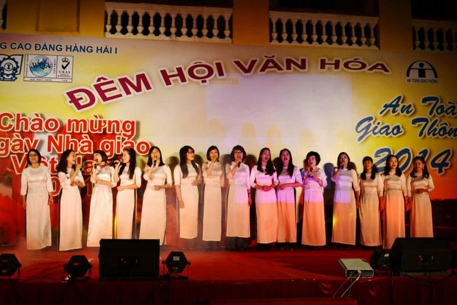 Bài ca người giáo viên nhân dân “Bài ca ấy, loài hoa ấy đẹp như em người giáo viên nhân dân...” do Tốp ca nam nữ giảng viên Khoa Kinh tế - Khai thác Máy – Điện, Điện tử trình bày.