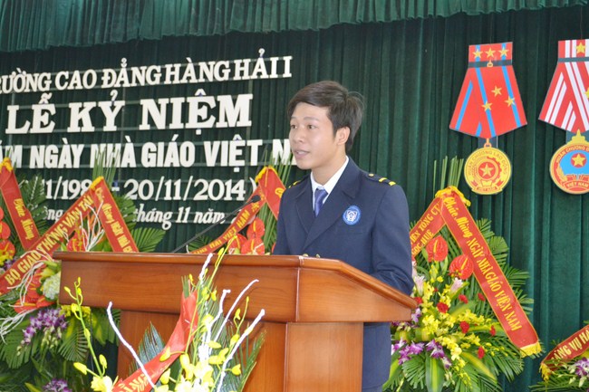 Thầy Hoàng Ngọc Tuấn - Thuyền trưởng, giảng viên khoa Điều khiển tàu biển, thay mặt cho toàn thể cán bộ, giảng viên, viên chức bày tỏ sự biết ơn sâu sắc tới các cơ quan hữu quan, Ban Giám hiệu, các thế hệ lãnh đạo của Nhà trường đã tạo mọi điều kiện thuận lợi cho các đồng chí giảng viên hoàn thành tốt nhiệm vụ và hứa quyết tâm đoàn kết, nâng cao tinh thần trách nhiệm, vượt qua mọi khó khăn, nâng cao chất lượng giảng dạy, hoàn thành xuất sắc nhiệm vụ năm học 2014 - 2015.