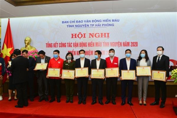 Nhân dịp tổng kết, UBND thành phố biểu dương 13 tập thể và 5 cá nhân đã có thành tích xuất sắc trong phong trào vận động hiến máu tình nguyện năm 2020.
