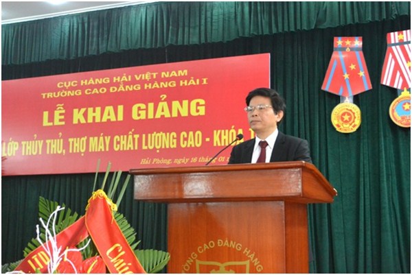 Phát biểu tại lễ khai giảng, Tiến sỹ Bùi Thiên Thu – Phó Cục trưởng Cục Hàng hải Việt Nam đã căn dặn thầy và trò nhà trường thực hiện nghiêm túc chương trình đào tạo, huấn luyện đã được phê duyệt. Đồng chí lưu ý thầy trò nhà trường tăng cường công tác đào tạo, huấn luyện những kỹ năng, kiến thức thực tế trên tàu, bồi dưỡng nâng cao trình độ về tiếng Anh chuyên môn, về thể lực và ý thức tổ chức kỷ luật của học sinh; Cục Hàng hải Việt Nam sẽ tạo điều kiện tối đa cho trường về cơ sở vật chất để nâng cao công tác đào tạo và huấn luyện và hỗ trợ nhà trường liên hệ việc thực tập và giải quyết việc làm sau tốt nghiệp cho học sinh tham gia khóa đào tạo.