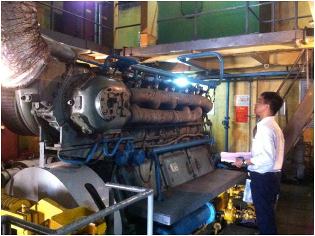 Ảnh 1: Tổ kiểm tra đang thực hiện nhiệm vụ tại Phòng mô phỏng Buồng máy