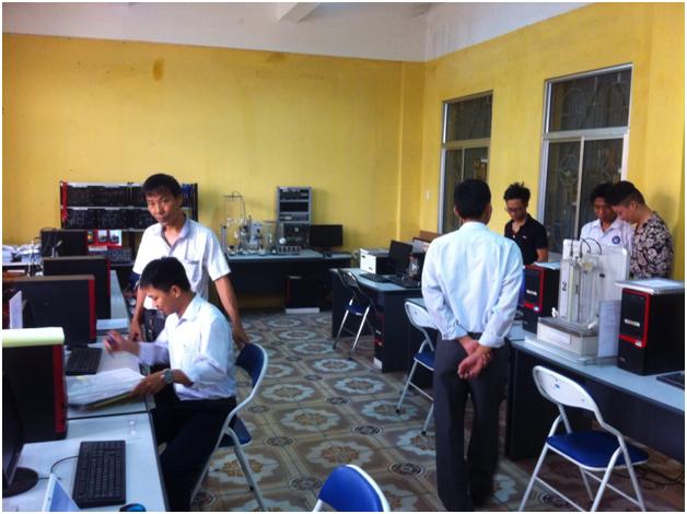 Ảnh 3: Tổ kiểm tra đang thực hiện nhiệm vụ tại Phòng thí nghiệm Điện – Điện tử