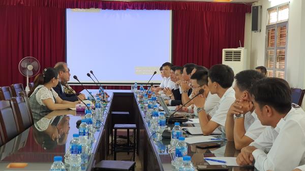 Tiếp đoàn có Thầy Hiệu trưởng Đinh Gia Vinh và đại diện một số đơn vị trong nhà trường. Tại buổi làm việc, Thầy Hiệu trưởng đã nhiệt liệt chào đón đoàn, đồng thời giới thiệu với đoàn về công tác chuẩn bị của nhà trường, các trang thiết bị và kế hoạch giảng dạy 02 nghề chất lượng cao.