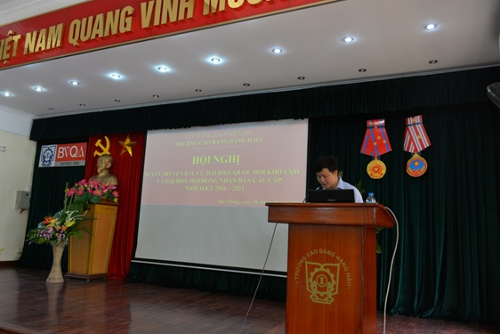 Tại Hội nghị, thay mặt ban tổ chức, thầy Nguyễn Văn Nam - Phụ trách phòng Công tác HSSV đã báo cáo tình hình triển khai công tác chuẩn bị bầu cử của nhà trường. Tuyên truyền cho cán bộ viên chức, cùng các em học sinh sinh viên về vị trí, vai trò của Quốc hội Việt Nam trong bộ máy nhà nước, Quốc hội là cơ quan quyền lực Nhà nước cao nhất, cơ quan đại biểu cao nhất của nhân dân; Vị trí, vai trò của Hội đồng nhân dân ở địa phương; Cách thức bầu cử và Trách nhiệm khi bầu cử của cử tri; Danh sách những người ứng cử đại biểu Quốc hội, Hội đồng nhân dân các cấp ở tổ bầu của cử tri nhà trường (Khu vực bỏ phiếu số: 06 – Tổ dân phố Đoạn Xá 1; 4; 5; 6; 7; trường Cao đẳng Hàng hải I, thuộc phường Đông Hải 1, quận Hải An, thành phố Hải Phòng). Cũng tại Hội nghị, đơn vị thường trực đã giải đáp các thắc mắc của viên chức, học sinh, sinh viên liên quan đến công tác bầu cử của.