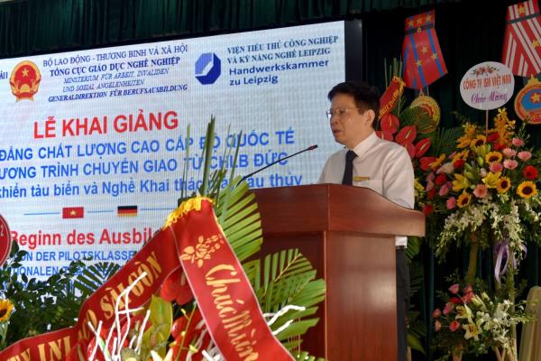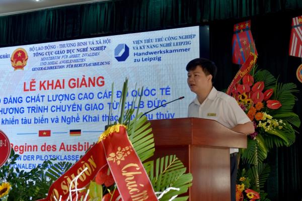Phát biểu tại buổi Lễ, đại diện lãnh đạo Cục Hàng hải Việt Nam,Tiến sĩ Bùi Thiên Thu – Phó Cục trưởng Cục Hàng hải Việt Nam đã gửi lời chúc mừng tốt đẹp nhất tới tập thể cán bộ, giáo viên, viên chức, học sinh, sinh viên Nhà trường. Đồng chí đã chỉ đạo, giao nhiệm vụ cho Nhà trường trong quá trình triển khai đào tạo thí điểm 2 nghề của CHLB Đức và chúc Nhà trường tiếp tục phát triển vững mạnh.
