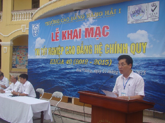 Thực hiện kế hoạch đã được phê duyệt, sáng ngày 22/6/2015, tại sân trường Cao đẳng Hàng hải I đã long trọng tổ chức Lễ khai mạc thi tốt nghiệp cho sinh viên cao đẳng hệ chính quy khoá 40. Tham dự Lễ khai mạc có NGƯT. Ths. Vũ Văn Dũng - Phó Hiệu trưởng nhà trường; các thầy, cô là thành viên Hội đồng thi tốt nghiệp; Ban coi, chấm thi; Ban thanh tra, giám sát của Trường Cao đẳng Hàng hải I và 1.063 sinh viên đủ điều kiện dự thi tốt nghiệp trong đợt này.