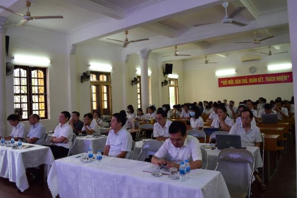 Tiến sĩ Lưu Việt Hùng – Bí thư Đảng ủy, Hiệu trưởng nhà trường cùng các thầy, cô trong Ban giám hiệu và đội ngũ cán bộ, giáo viên nhà trường tham dự bồi dưỡng, tập huấn
