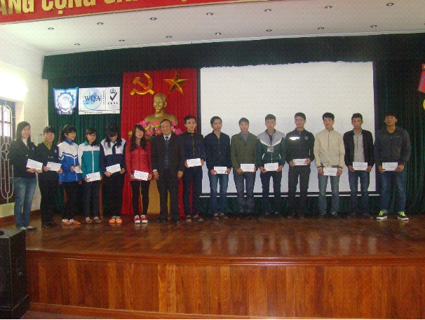 Với mong muốn các sinh viên nghèo học giỏi, vượt khó được đón Tết đầm ấm đầy ý nghĩa, sáng ngày 12/02/2015, tại Hội trường A3, NGƯT- ThS. Vũ Văn Dũng – Phó hiệu trưởng, Chủ tịch quỹ khuyến học đã trao quà cho 24 em sinh viên với tổng số tiền trên 7 triệu đồng.