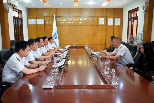 Tham dự buổi làm việc có Ông Thilo Fritz - chuyên gia Đức, phụ trách nghề Điều khiển tàu biển cùng phiên dịch viên, Bà Trần Lê Khánh Linh - đại diện Công ty AIC. Về phía trường Cao đẳng Hàng hải I có Tiến sĩ Lưu Việt Hùng - Bí thư Đảng ủy - Hiệu trưởng, các thầy Phó Hiệu trưởng, cùng đại diện phòng Đào tạo, khoa Điều khiển tàu biển.